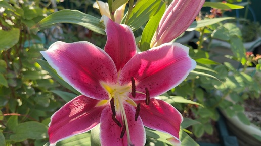 Лилии в горшечном садике, зацвела Эль Капитан🌺🌿🌺🌿🌺Шайн Он🌼🌿🌼🌿🌼 в бутонах Фронтера🌸🌿🌸🌿🌸