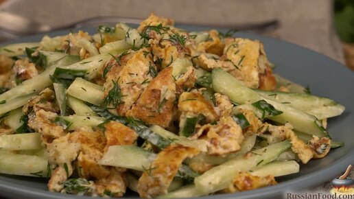 Оригинальный вкус при простом составе. Салат с яично-овощными блинчиками