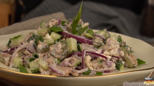 Рыбные блюда особенно ароматные. Салат с тунцом и огурцами
