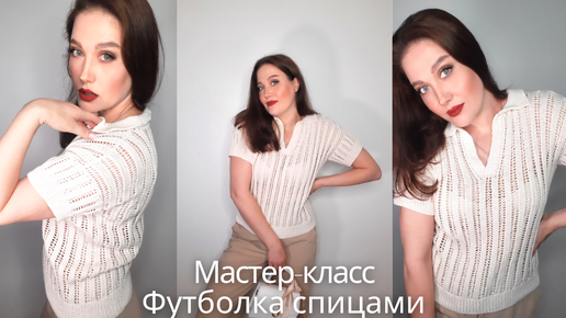Футболка с воротником поло спицами/Мастер-класс