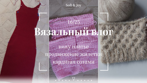 Вязальный влог 16/25 | Продолжаю платье и жилетку. Связала образец для кардигана сотами
