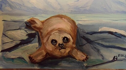 Как нарисовать тюленя. Процесс работы над картиной_ч1_заливка фона, дальний план.