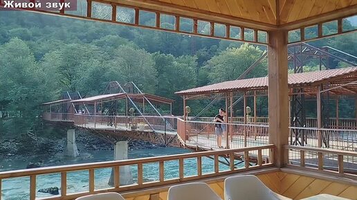 Стеклянный мост через горную реку в Абхазии. Местная достопримечательность