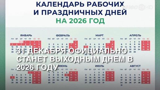 31 декабря официально станет выходным днём в 2026 году (2025-07-06)