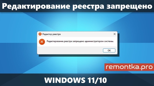 Редактирование реестра запрещено администратором системы в Windows 11 или Windows 10 (Решение)