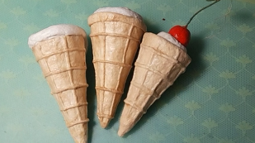 Мороженку хочешь? Новогодний сувенир из ваты Полоски и клетка.