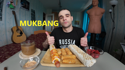 МУКБАНГ ШАУРМА С ШАМПИНЬОНАМИ / ФРЕНЧ ДОГ / СЫРНЫЕ ПАЛОЧКИ / КЛУБНИКА / EATING MUKBANG ASMR АСМР