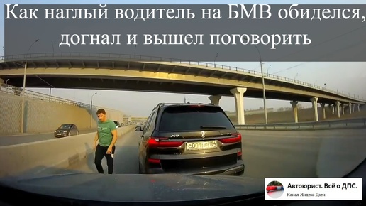 Как наглый водитель на БМВ обиделся, догнал и вышел поговорить