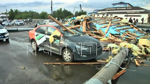 Сильный ветер сорвал крышу кафе и она раздавила 8 автомобилей, ехавших по дороге