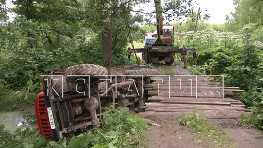 Пожарная машина по пути на вывоз провалилась в реку вместе с мостом