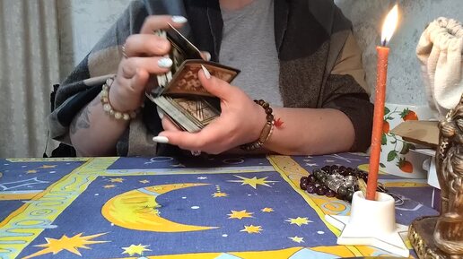 Говорит и показывает таро.