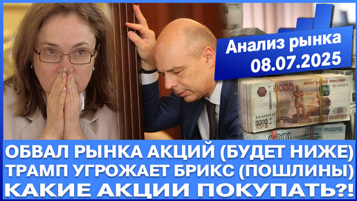 Анализ рынка 08.07 / ТРАМП УГРОЖАЕТ БРИКС / Тотальные пошлины Сша / ОБВАЛ АКЦИЙ РОССИИ (БУДЕТ НИЖЕ)