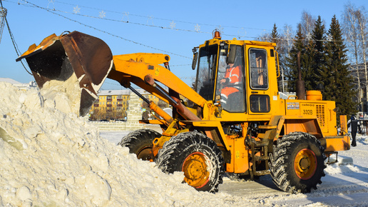 Фронтальный погрузчик Амкодор-332В. Работа по уборке снега.