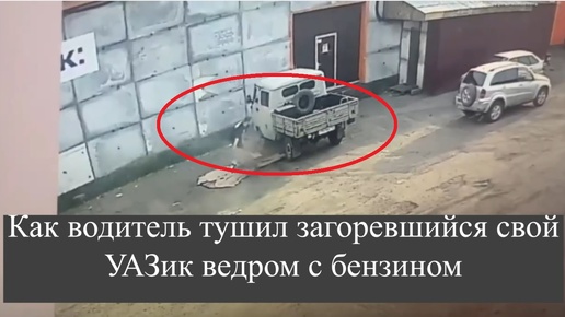 Как водитель тушил загоревшийся свой УАЗик ведром с бензином