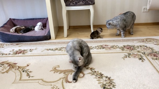 Папа котик Маню решается познакомиться со своим маленьким сыночком.