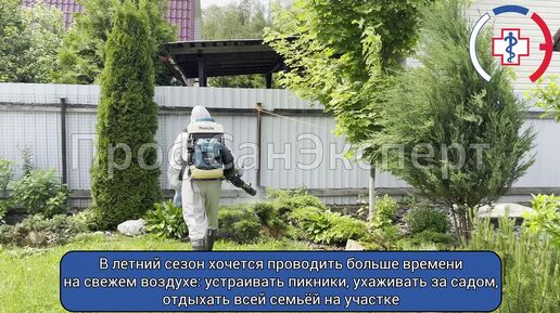 Уничтожение комаров бензиновым распылителем на придомовом участке.