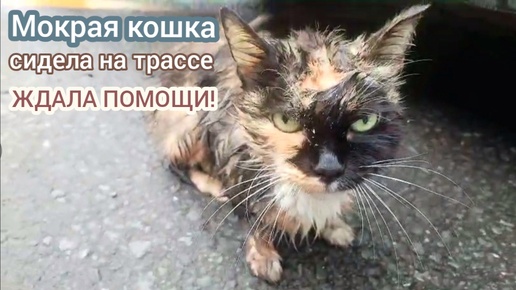 На трассе мокрая и замерзшая кошка просила помощи у проезжавших машин / одна девушка остановилась и кошка зашла под ее машину в укрытие ...