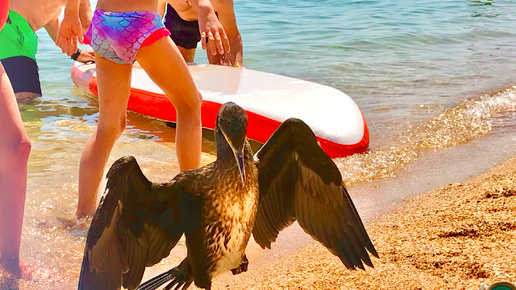 Умный баклан прилетел сегодня на Золотой пляж и устроил представление!… Танцевал, позировал и показывал характер!…