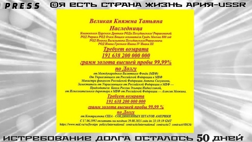 ИСТРЕБОВАНИЕ ДОЛГА Осталось 50дней