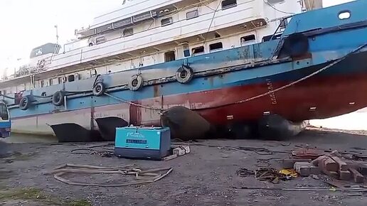 Аварийный теплоход вытягивают на берег после разлива топлива в Енисей