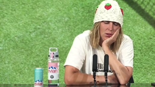 Российская теннисистка удивила на пресс-конференции Уимблдона футболкой Nirvana и пивом в руке