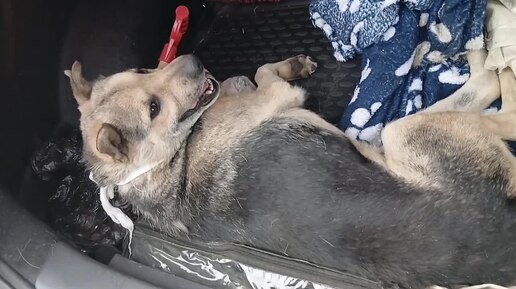 Подобранная на дороге, сбитая собака, после вет. клиники уже в приюте Ананда. Через три дня планируется операция.