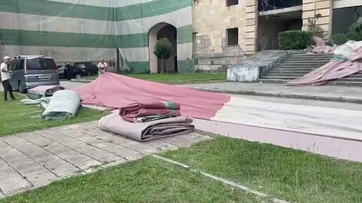 Баннер на здании бывшего Совмина в Сухуме обновят