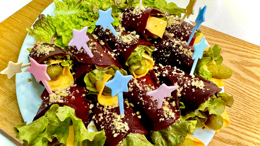 Праздничная закуска из свеклы, сыра, маринованных огурцов!