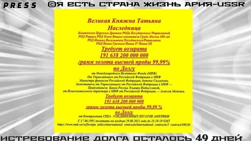 ИСТРЕБОВАНИЕ ДОЛГА Осталось 49дней