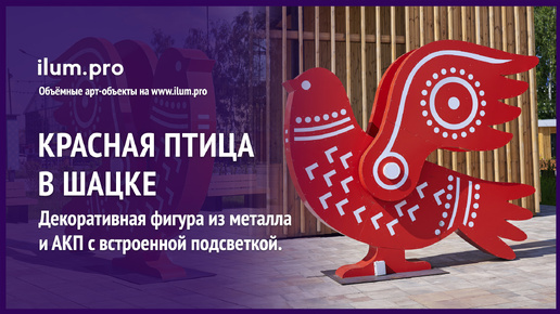 Арт-объект в виде объёмной красной птицы с встроенной подсветкой в Шацке / Айлюм Про