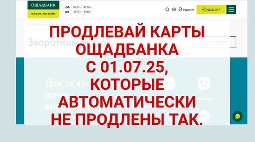 КАК ПРОДЛИТЬ КАРТУ ОЩАДБАНК С 01.07.25 ОНЛАЙН?