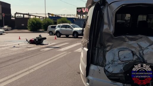 Сотрудники Госавтоинспекции Красноярска работают на месте ДТП с участием мотоциклиста