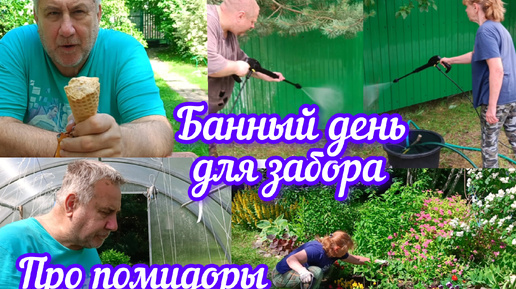 Наш денёк в деревне . Решили керхером помыть забор . Борис опять про помидоры.🏠😀