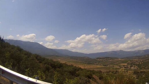 Съездили Рыбачье. Возвращаемся по крутому серпантину. Пою вместе с Ю. Михальчик