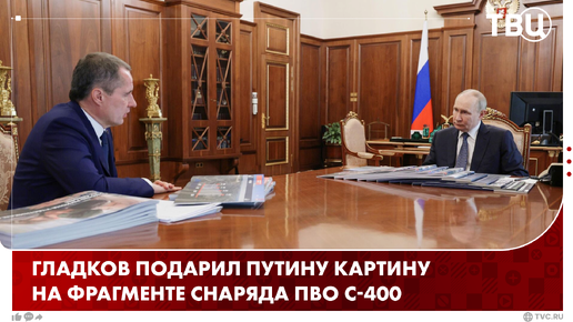 Гладков подарил Путину картину на ФРАГМЕНТЕ СНАРЯДА ПВО С-400