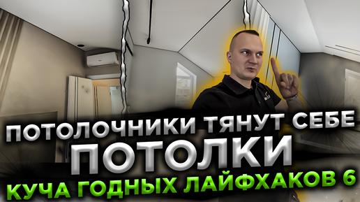 Потолочники тянут у себя дома потолки. Куча годных лайфхаков 6. Тянем потолки под мансардной крышей.