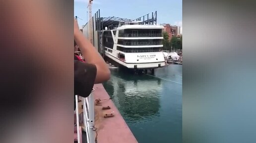 Круизный лайнер «Баргузин» во время спуска на воду в Иркутске протаранил буксировочный катер