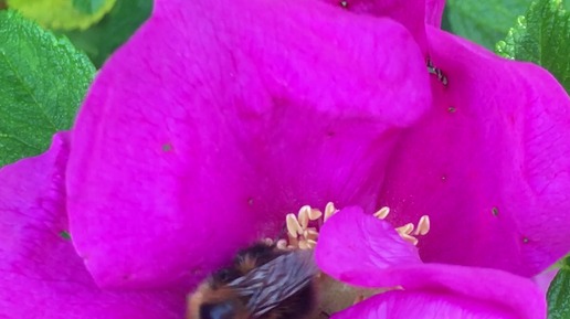 Мохнатый шмель собирает пыльцу с шиповника
