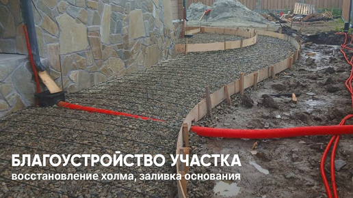 Благоустройство участка: восстановление холма, стяжка под мощение, заливка бетона