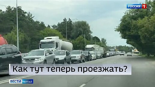 Большая автомобильная пробка собралась сегодня на месте частично открытой в Барнауле новой дорожной развязки