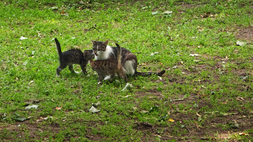 Кошка с детьми - умывание и кормление) 🤗🤗🤗