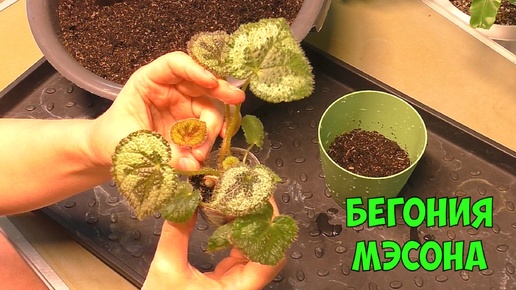 Бегония Мэсона. Перевалка подростка выращенного из фрагмента листа