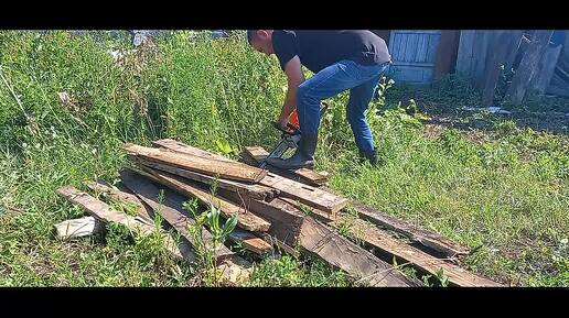 Распиливаю старые доски на дрова