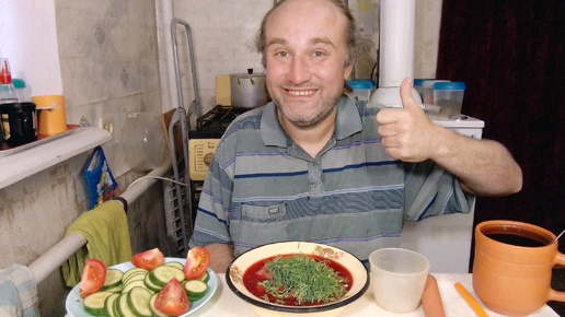 Обед вчерашний борщ. Сплетничаем с Рыжулей. Мукбанг. Обжор. Еда на камеру. Диета. Шизофрения.