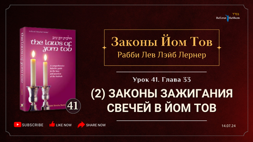 𝟰𝟭. Законы Йом Тов | (2) Законы зажигания свечей в Йом Тов | Глава 33 | Рабби Лев Лэйб Лернер