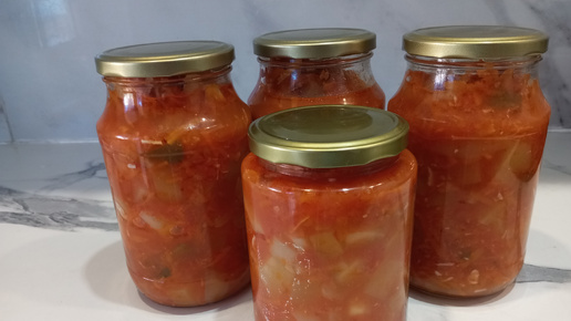 Заготовки на зиму, очень вкусный салат из кабачков.