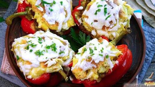 Картофельное пюре с мясом в овощных лодочках. Перец с картошкой и мясом