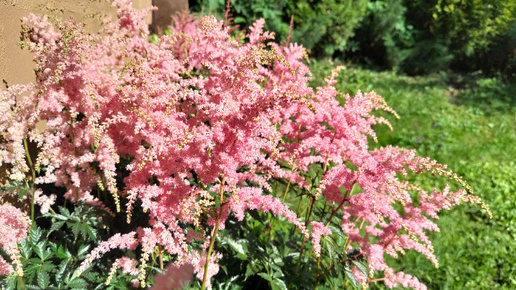 Астильбы под кирпичной стеной. Наш сад 2025