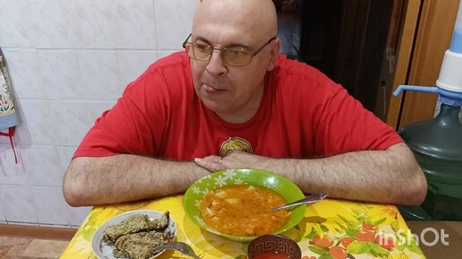 Мукбанг. Молдавский фасолевый суп, ацецили и томатный сок. Круги на полях.