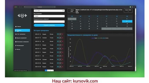 Веб-приложение «Фитнес под контролем» для ведения журнала тренировок и анализа достижений пользователя. Программа на PHP 5.5 + БД MySQL